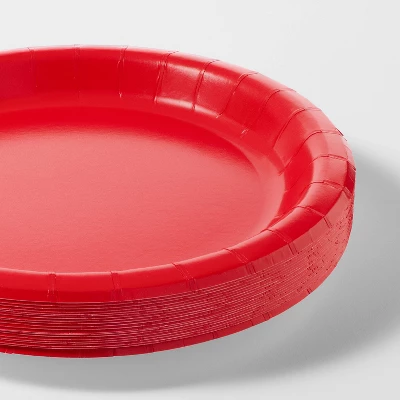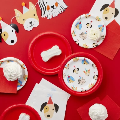 Host kids’ parties or your pet’s birthday with ease using the 20ct 8.5″ Disposable Pet Pawty Dinner Plates Red from Spritz™. These round paper plates with a solid red color go well with many tableware. Pile them with your favorite food and eat them at your own pace as it is microwave friendly. Match these paper plates from Spritz™ with other tableware or decor for a complete look.
