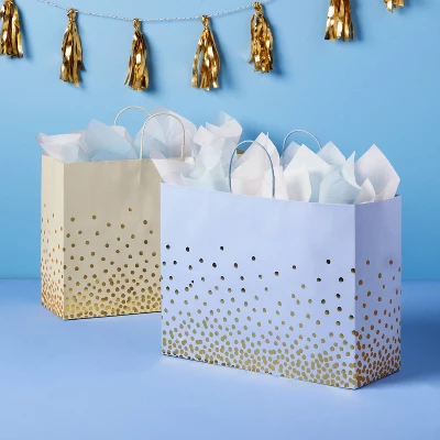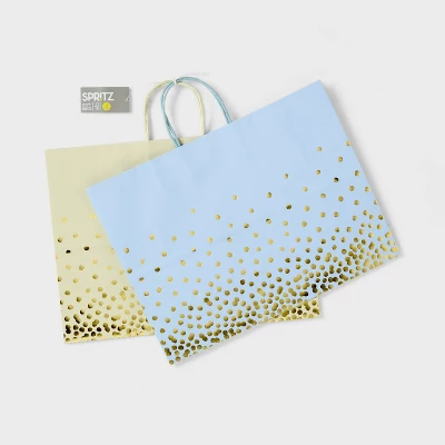 Pack your festive gifts with the 2pk XL Vogue Bag Assorted with Gold Foil from Spritz™. These paper gift bags come in assorted colors with gold foil prints, making them great for birthdays, holidays and special occasions. Sturdy yet stylish, they offer a convenient way to package gifts, party favors or treats. With a pack of two, you’ll always have the perfect bag for any celebration.