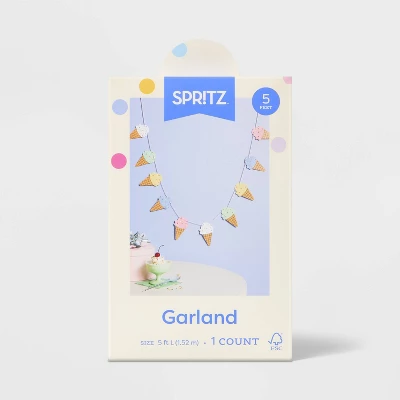 Add some pop to your decorations with the Ice Cream Garland with Gold Metallic from Spritz™. This garland features a series of ice-cream cutouts in assorted colors with gold metallic lines. The garland comes with loops on both ends for convenient hanging. In addition to working great as decorative accents for celebrations, it can also be used for a variety of fun art projects.