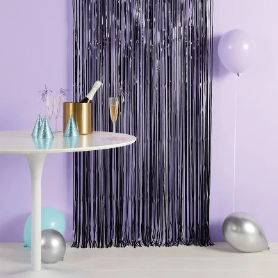 The Iridescent Backdrop Black from Spritz™ creates a shimmering background that is easily layered with other party decorations or hung in a doorway to set the party scene as guests arrive. Whether you hang it in the doorway to create a dramatic entrance to your party or event, or mount it on the wall with balloons and props to create a DIY photo booth backdrop, the Spritz™ iridescent backdrop in black provides a super easy way to elevate your party decor and make sure your event is extra memorable.