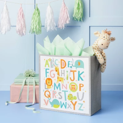 Whether you’re headed to a baby shower or birthdays, the Large ABC’s and Animals Baby Shower Gift Bag from Spritz™ makes a great pick for presenting a gift to the little one. The large gift bag features a bright and colorful alphabet design with animal characters and a white cord handle to add the sweetest flair to the gifts. The roomy size easily holds stuffed animals, clothes and blankets, making it easy to keep your gifts looking great. Just toss in your present, add some tissue paper and get ready to gift.