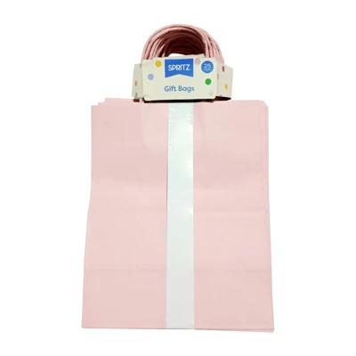 Present your gift in style in this Multipack Gift Bags 25ct in Pink from Spritz™. Great for handing out gifts, goodies, sweets, holiday treats and more, as well as oddly shaped gifts that are hard to gift wrap, this multipack gift bag makes a great pick for handing out gifts on birthdays, special days, anniversaries, or other events and occasions. Showcasing soft pink, it’s sure to add sweet flair to your gifts, while the tote handles make it easy to carry.