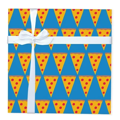 - Turquoise pizza-print gift wrap brings quirky, colorful flair to your gifting