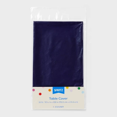Create an upbeat party atmosphere with the Happy Rectangular Disposable Table Cover Navy Blue from Spritz™. This table cover features a solid navy blue color and is capable of withstanding spills and messes. Whether indoors or outdoors, the happy rectangular disposable table cover navy blue from Spritz™ provides a hassle-free setup.