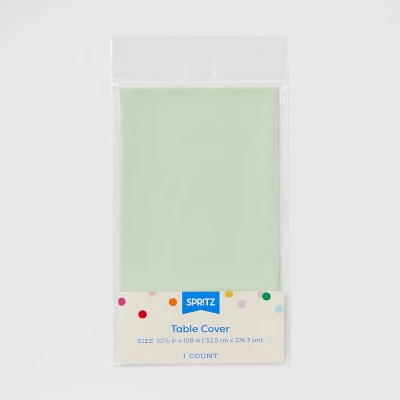 Get your table ready for your next party with this Sage Rectangular Table Cover from Spritz™ This table cover offers you a base to set the table for any party or gatherings while ensuring it stays protected from spills or stains. With a simplistic sage color, this table cover adds a pop of fun to your celebrations. Pair it with suitable dinnerware, tableware and napkins to create an elegant display.