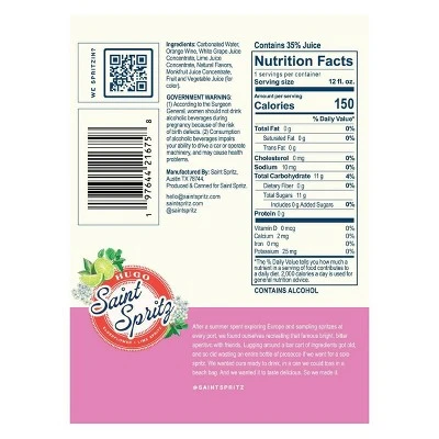 - Each pack includes 4 cans (12 fl oz each) of Saint Spritz Hugo