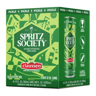 Introducing Spritz Society Pickle by ClaussenĀ®, a first of its kind innovation. What happens when you take a 150 year old pickle brand and combine it with an award-winning wine spritzer? You get a one-of-a-kind pickle spritz thatās zippy, refreshing and ready to drink! Made with real white wine and natural flavors, each 12oz can of Spritz Society is 120 calories, 4.5% ABV and is gluten-free. Spritz Society is an award-winning ready-to-drink brand created by media influencers and entrepreneurs, Ben Soffer (@BoyWithNoJob), Claudia Oshry (@GirlWithNoJob) and Jackie Oshry (@JackieOshry). Founded on the idea that taste matters, Spritz Society takes all natural, recognizable ingredients and packs them into convenient spritzers.